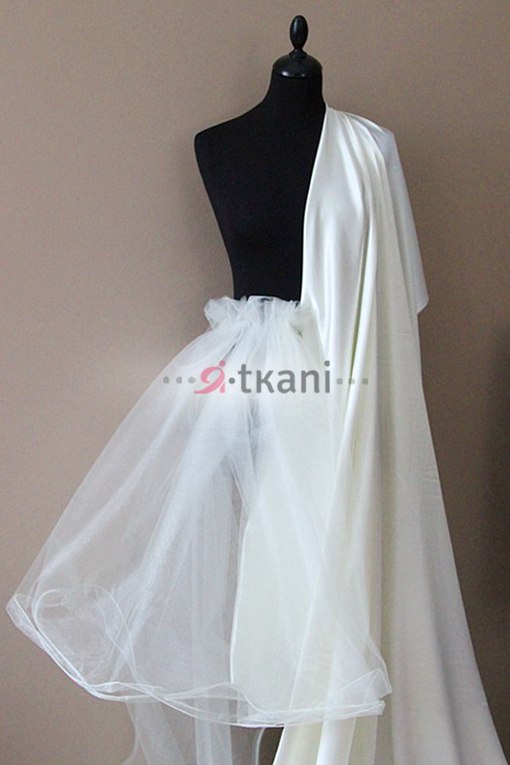 Предназначен для пошива особых изделий: нарядных платьев, в том числе платьевкомбинаций, юбочек, блуз. Служит идеальной подкладкой под еврофатин. Его блестящая поверхность отлично подчёркивает лёгкое сияние еврофатина и в глубине складок создаёт ощущение воздушности и утончённости. В отличие от совершенно матовых материалов, которые просто "растворяются" под слоями фатина и становятся словно невидимыми. Атлас-стрейч в качестве подкладочного материала иногда используется в другом цвете (не в тон фатина), чтобы создать игру оттенков в изделии. Фатин в тон и универсальные нитки фирмы MADEIRA можно также приобрести в нашем магазине тканей. В последнее время атлас-стрейч часто используют для пошива изысканных комплектов для сна: пижам, топов и шортиков, будуарных пеньюаров, комбинаций, масок для сна. Идеально комбинируется с мягким кружевом "Шантильи".