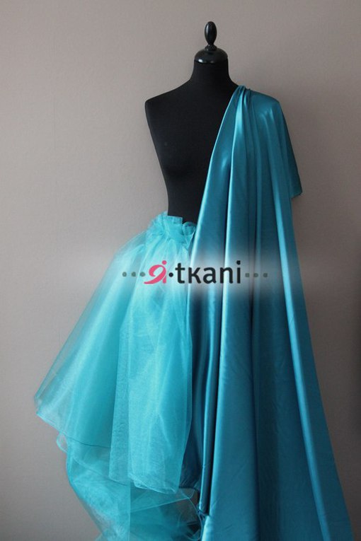 ОПИСАНИЕ ТКАНИ: Состав: 97% пэ, 3% эластан. Мягкий, струящийся материал с выраженной блестящей поверхностью. Изнаночная поверхность матовая. Лицевая сторона обладает приятным (не кричащим) сиянием. Из атласа-стрейч отлично получаются изделия, выкроенные по косой. Игра складок полотна в таком крое смотрится очень изысканно.