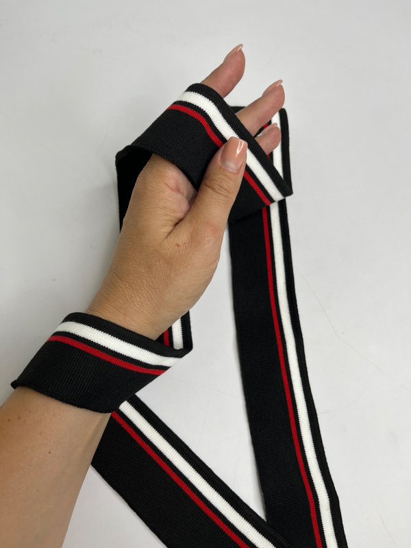 —PDT50-009 Подвяз трикотажный. 2 полосы: белая и красная. Цвет "Чёрный" (4,5см*115см)