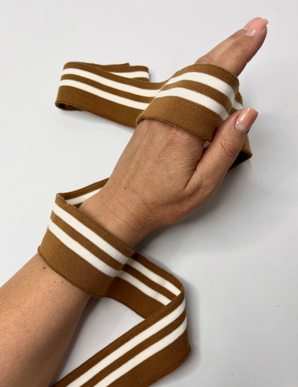 PDT50-003 Подвяз трикотажный. 2 белые полосы. Цвет "Кэмел" (4,5см*115см)