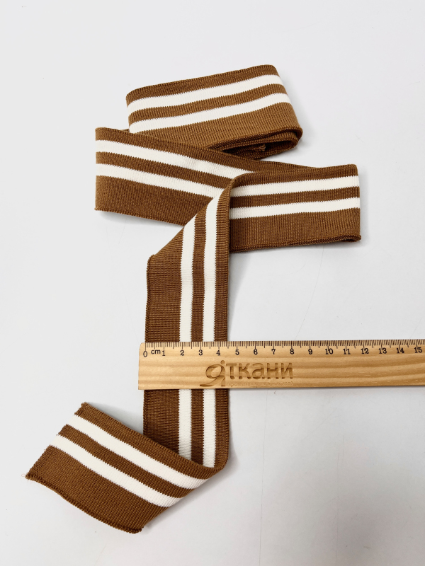 —PDT50-003 Подвяз трикотажный. 2 белые полосы. Цвет "Кэмел" (4,5см*115см)