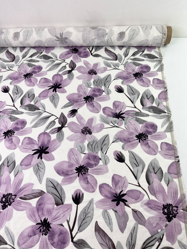 HLPL53-066 Полулён "Сиреневые цветы на молочном"