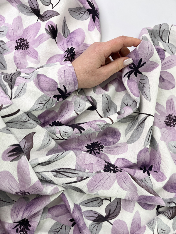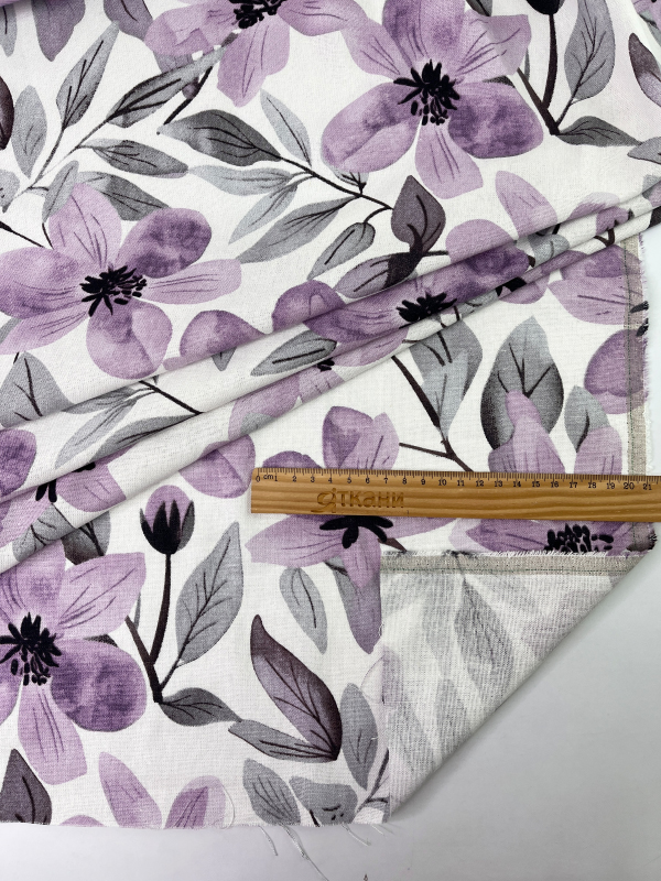 —HLPL53-066 Полулён "Сиреневые цветы на молочном"