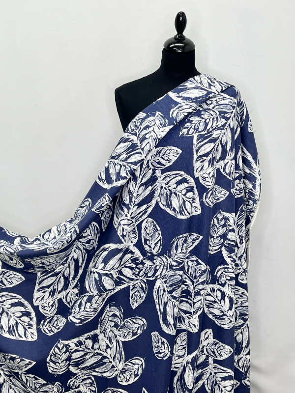 —HLPL53-063 Полулён "Листья на тёмно-синем"
