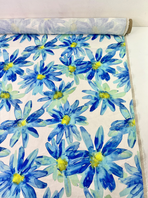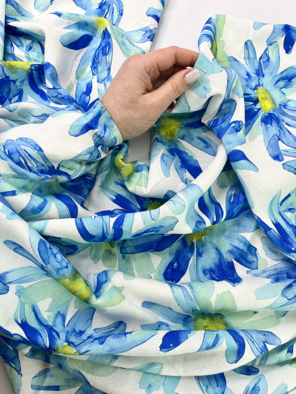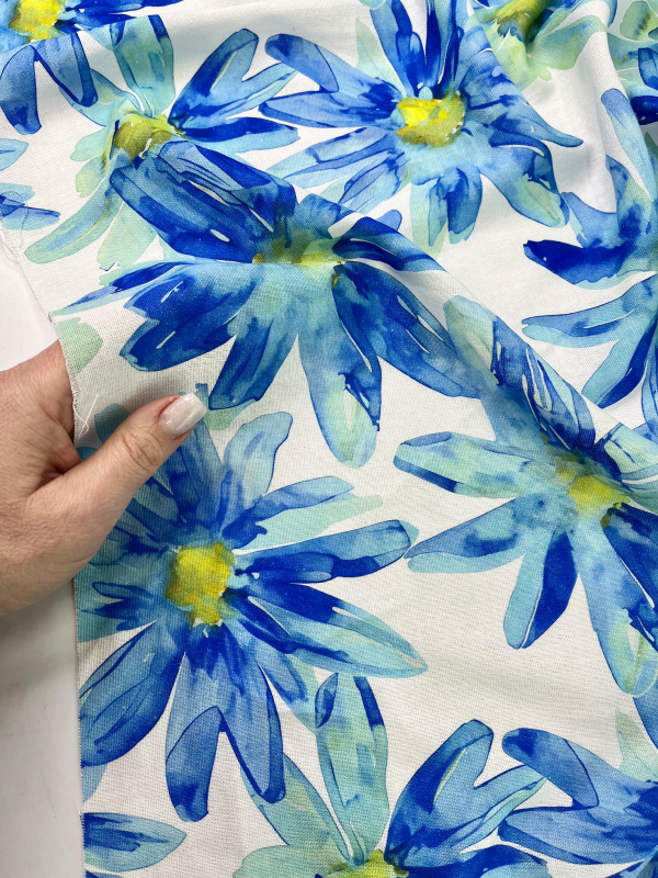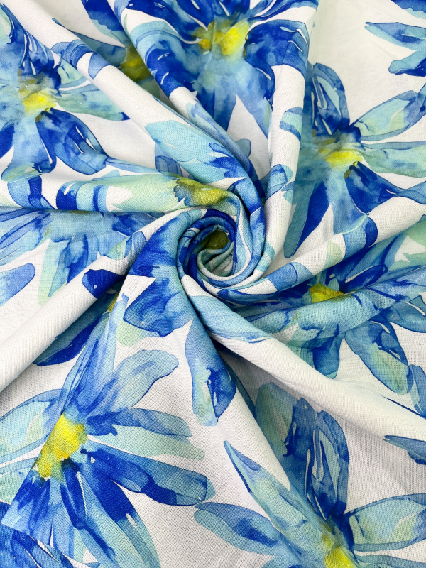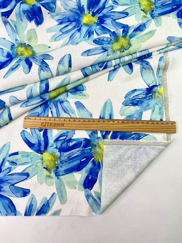 —HLPL53-065 Полулён "Синие ромашки на молочном"