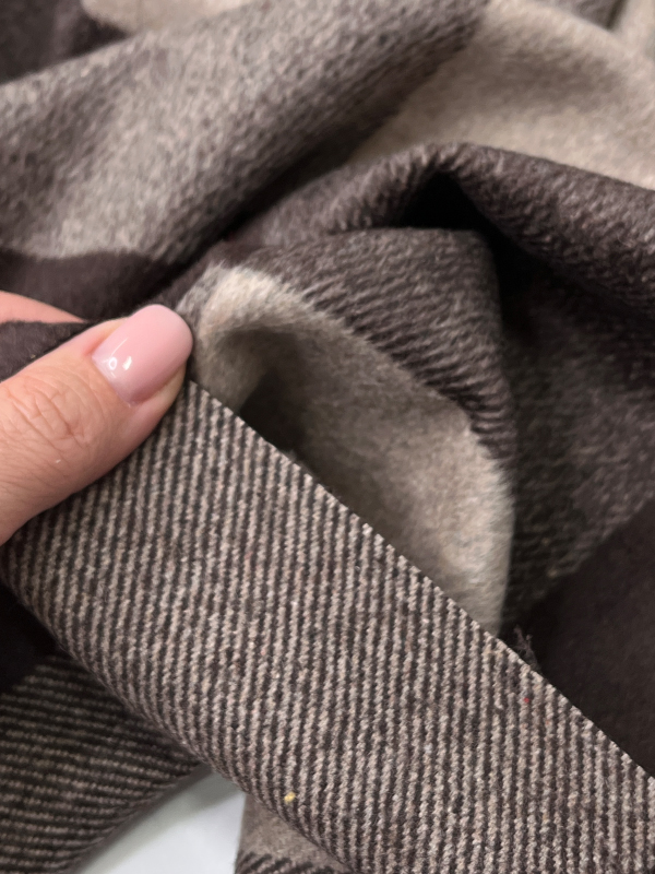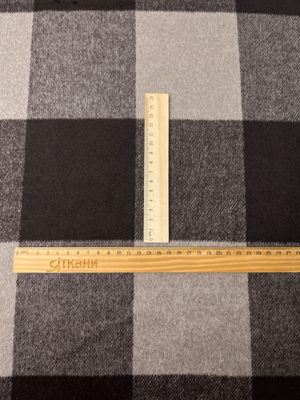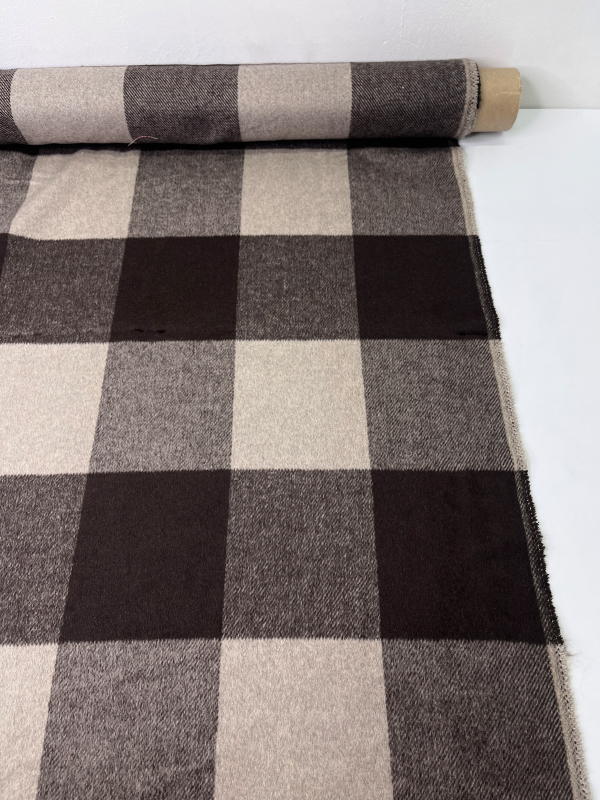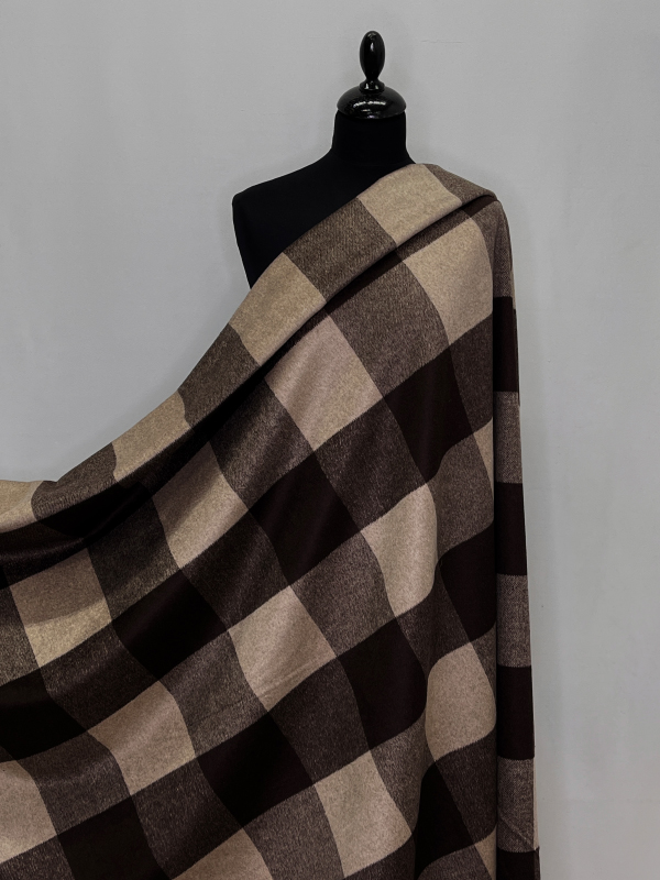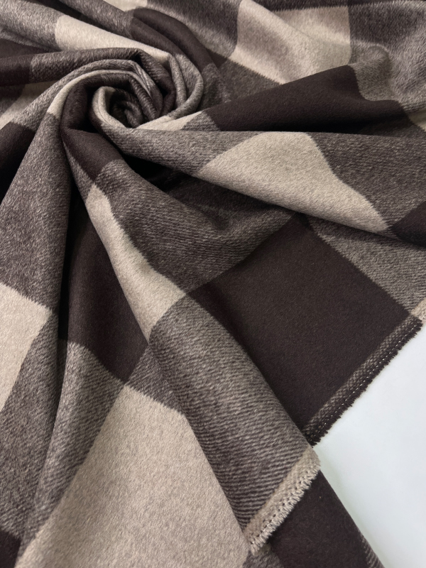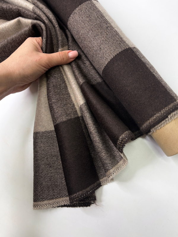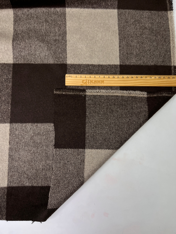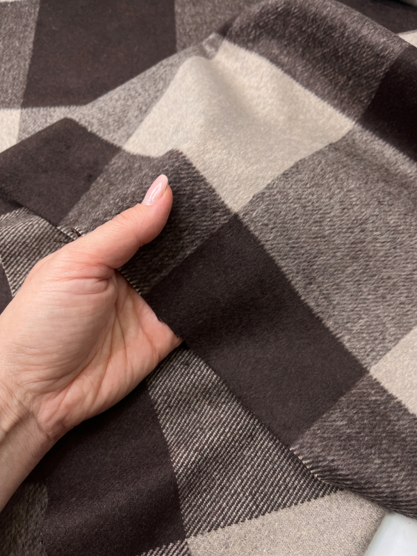 PA53-037 Пальтовая ткань "Микроворса" "Клетка шоколад с бежевым"
